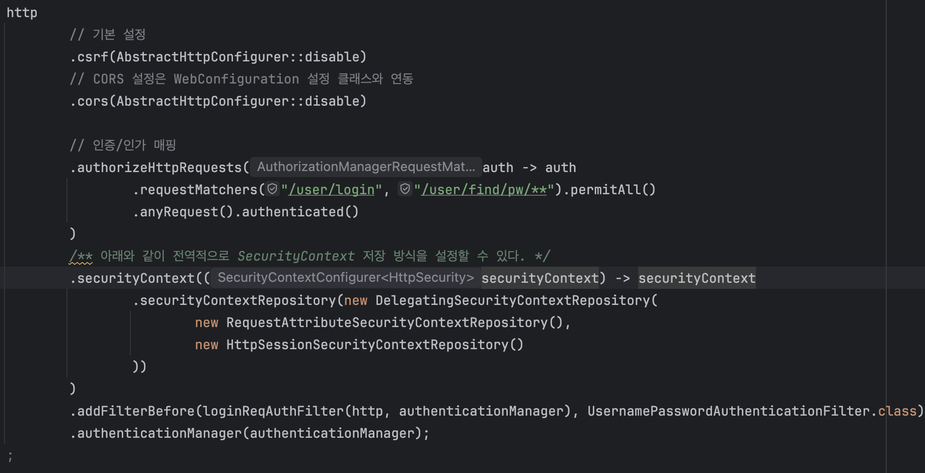 그리고 아래와 같이 https://docs.spring.io/spring-security/reference/servlet/authentication/persistence.html 가이드에 맞게 코드를 작성하였습니다.