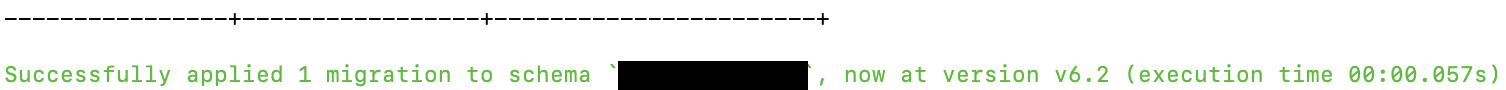 3. flyway 명령어를 실행하면 초록색으로 완료된 것을 확인할 수 있습니다.