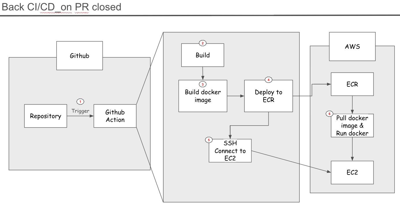 1. 개발자가 생성된 PR의 머지를 승인함으로써 Github Action이 실행됩니다.